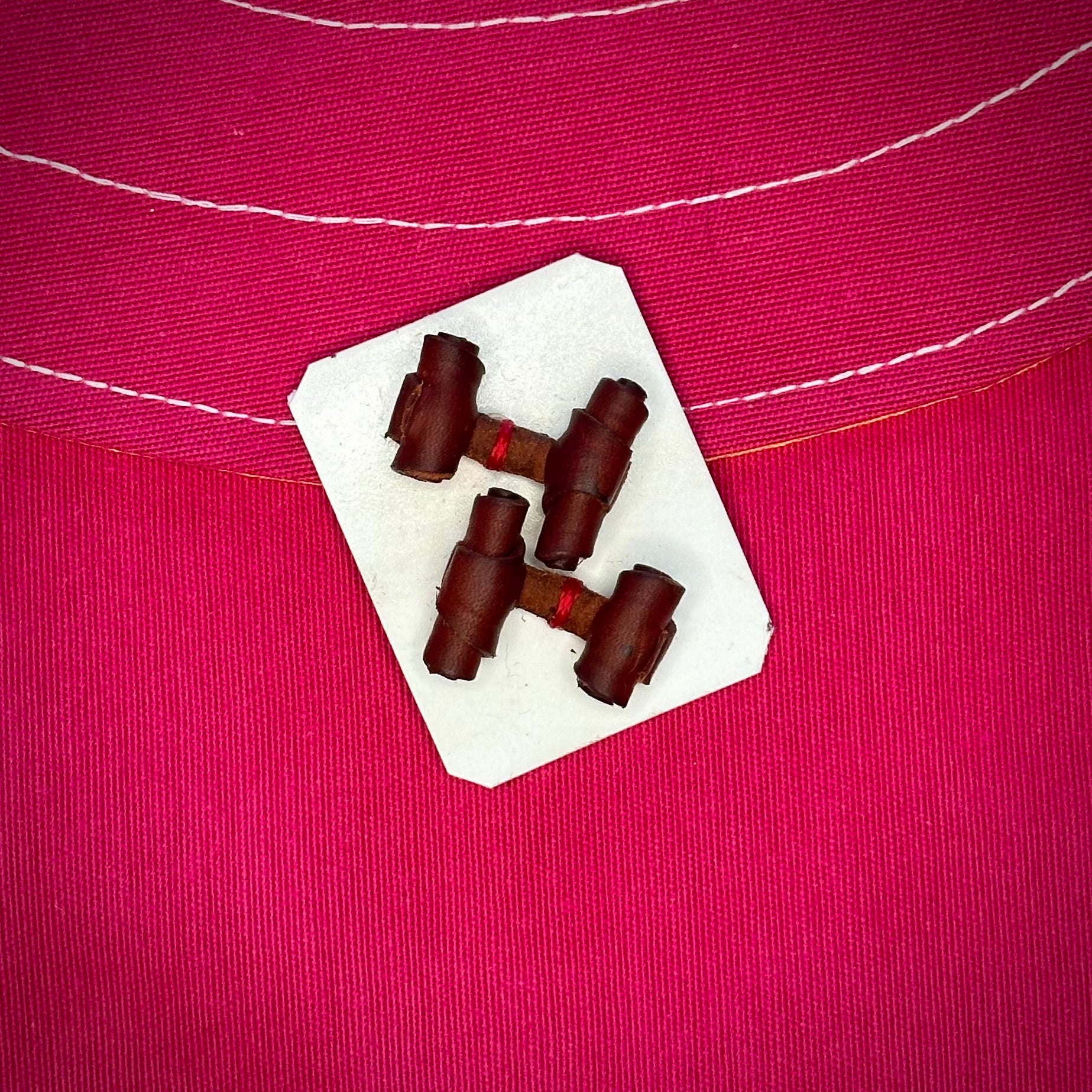 Juego de gemelos realizado totalmente de forma artesanal en España (La Puebla del Río) con cuero de ternera de primerísima calidad.
